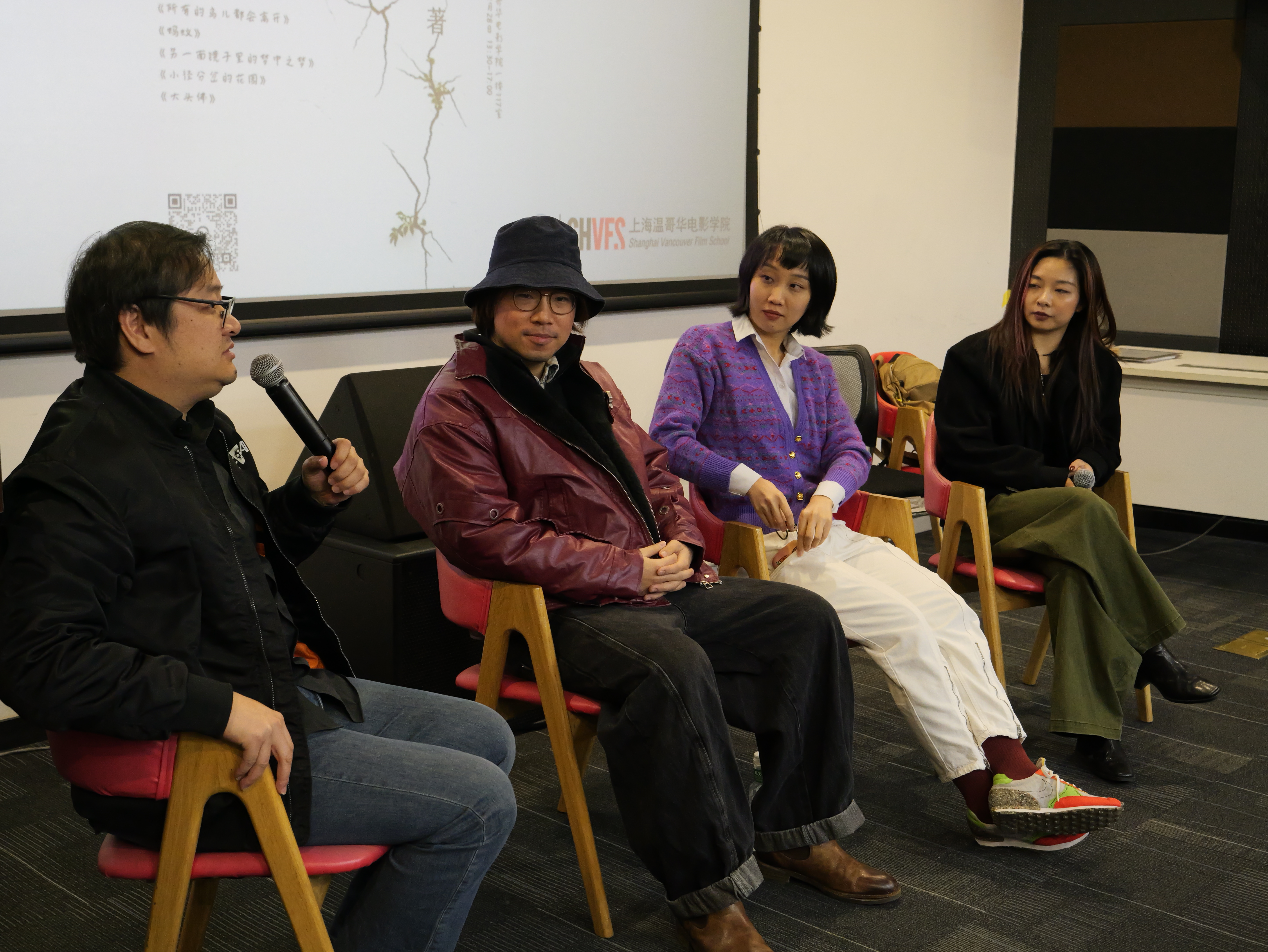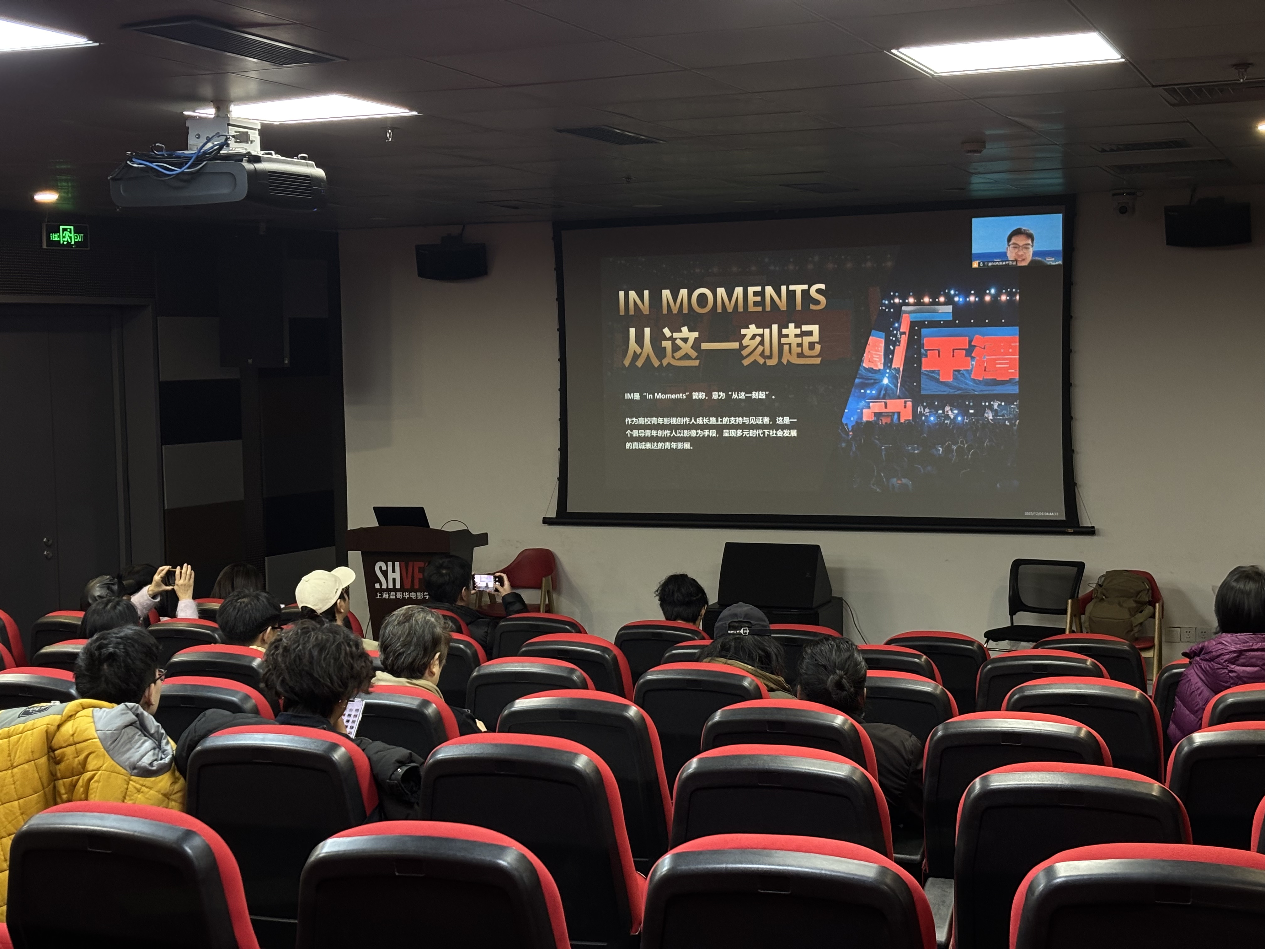 12月28日,上海温哥华电影学院与平潭IM两岸青年影展联合举办的2025年度“青春放映”活动在学院顺利举行。本次展映以“生活的裂隙”为主题,集中呈现七部入围平潭IM两岸青年影展的优秀短片《杀死艾达》《所有的鸟儿都会离开》《蚂蚁》《另一面镜子里的梦中之梦》《小径分岔的花园》《无忧无虑》《大头佛》。映后,《大头佛》导演柯志杰、主演蓝蓓蓓、《无忧无虑》摄影指导、温影电影制作专业讲师曹丹滢与到场师生、影迷观众围绕短片创作背后的思考、拍摄挑战与艺术表达进行了真诚分享。活动由上海温哥华电影学院副院长陈晓达主持。
