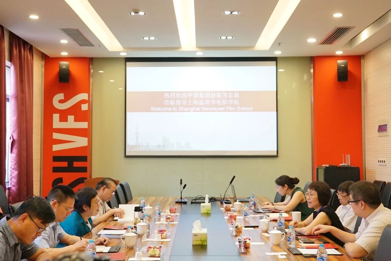 昨日,倾盆大雨给连日来的炎热带来一丝清凉,而华策影视集团创始人、总裁赵依芳女士携杭州大策投资集团总裁夏欣才先生及华策教育执行总裁雷祥雄先生等一行在雨后到访上海温哥华电影学院共商合作,也让学院为之振奋。学院执行院长蒋为民、副院长Luis Calandre以及副院长陈晓达与华策集团的领导们在热烈友好的氛围中进行了多层次的洽谈。学院教学、行政及财务部门负责人也一同与会。