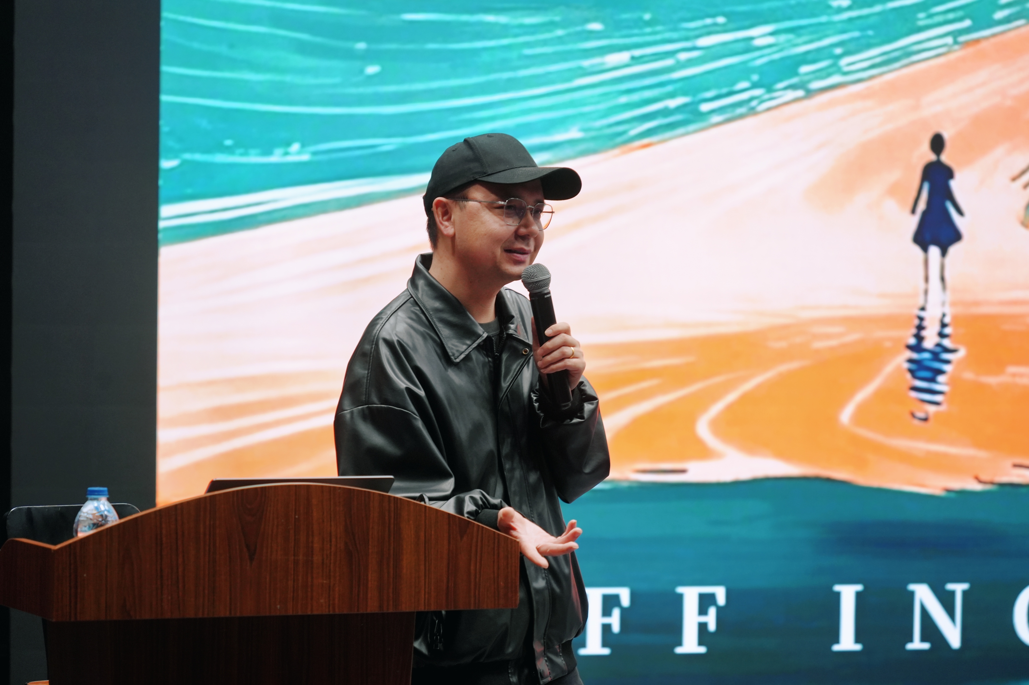 青年导演、编剧艾麦提·麦麦提以《青年导演与多元文化》为题,与学员们分享了他的创作思考与实践体悟。从电影学院毕业后,他持续投身创作,并任教于温影,在艺术探索与教学相长中,不断深化对电影工业流程的认知与把握。艾麦提结合自身创作经历,强调了规范严谨的工业流程对项目可控性与完成度的重要性。他表示,电影创作本质上是团队系统工程,无论是文艺片或类型片,周密细致的前期工作都至关重要。艾麦提鼓励青年创作者从个人生命体验出发,在故乡叙事中找到真正触动自己的文化印记,让情感与思考在创作中自然流淌。同时,在风格形成过程中,创作者可以对城市特质与地域文化进行风格化提炼,并灵活运用类型片的视听语言,让表达更轻盈生动,在多元文化语境中探索更具活力的作者风格。