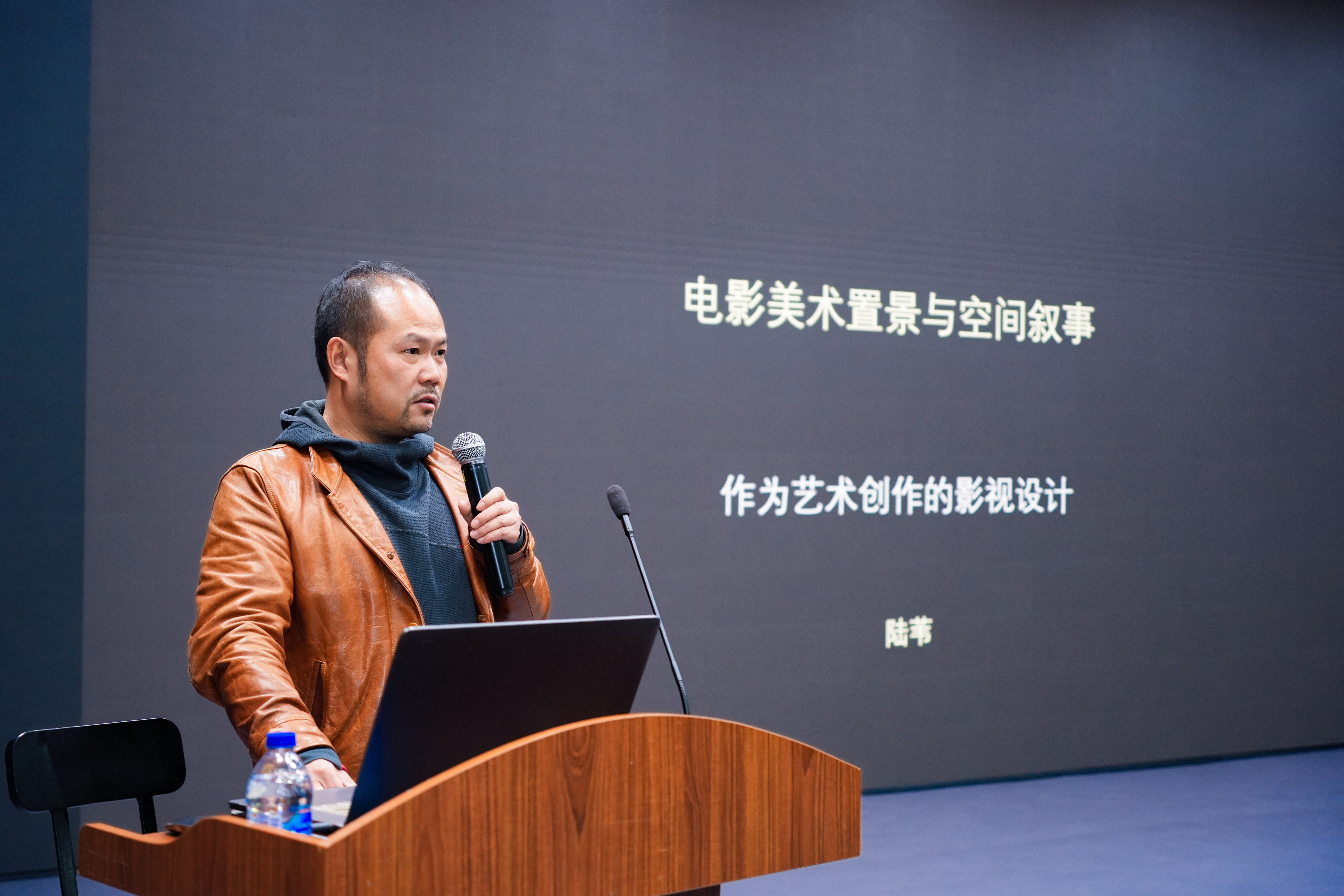 艺术家、电影美术师陆苇以《电影美术置景与空间叙事》为题,从美术设计的角度探讨了空间如何参与并深化叙事。陆苇指出,电影叙事并非仅是按时间线排列情节,美术设计需从文本的底层逻辑出发构建叙事空间。他表示,电影中的时空关系需通过挖掘新维度来丰富表达,而这一维度往往依托于置景、道具的组织与结构化设计来实现。陆苇强调,电影美术的职责不仅在于完成场景的视觉呈现,更在于深入理解戏剧内核,使空间本身成为叙事的重要参与者。他建议创作者从东西方经典绘画中汲取光影、色调与风格的启发,并始终以镜头思维审视场景的视觉转化。最后,他鼓励青年创作者广泛涉猎各艺术门类,以此建立个人审美体系、形成清晰的创作意图、保持敏锐的感受力,从而在创作中确立真正的主体性。