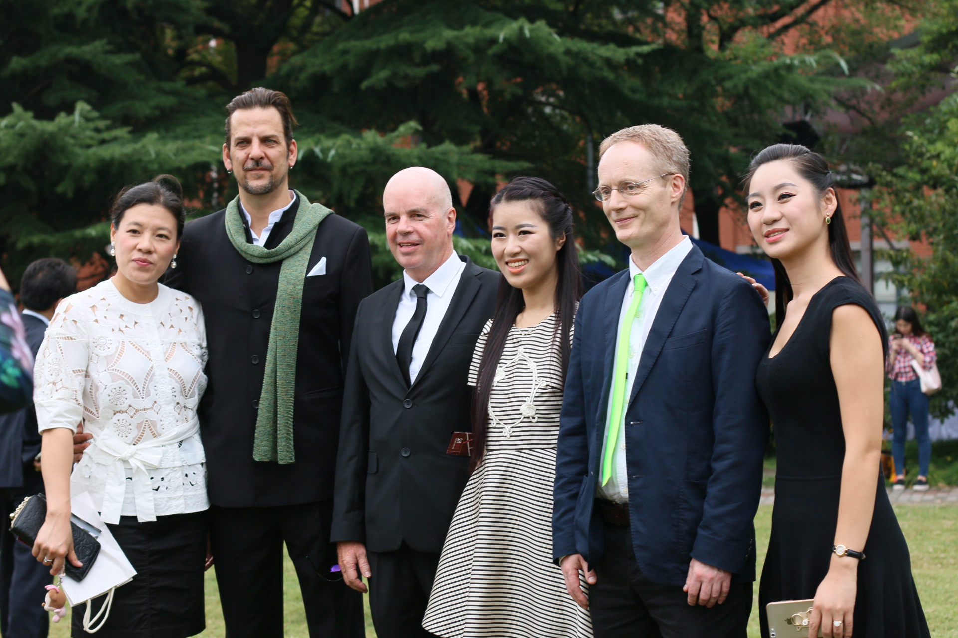 ▲2015年9月,伯恩斯先生(右二)在上海温哥华电影学院首届毕业典礼上与师生合影,见证学院第一批学子完成学业。